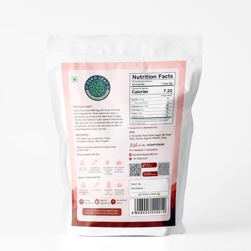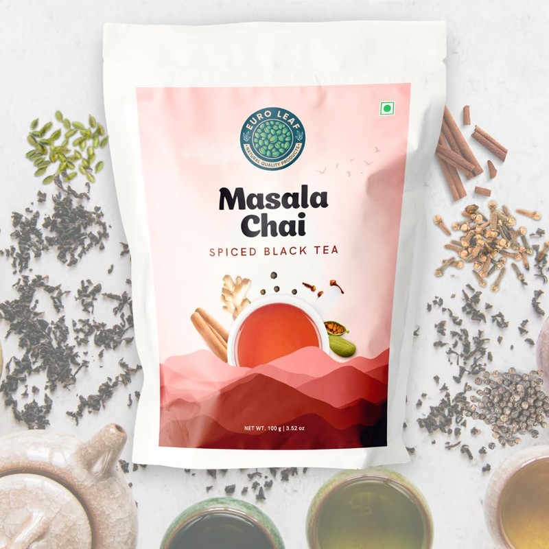 Masala Chai Tea CTC Black Tea Premium Quality Indian Masala Chai Loose Leaf (100 gm) With a Blend Of Cardamom, Clove, Cinnamon, Ginger, and Black Pepper | Resealable Ziplock Pouch EURO LEAF