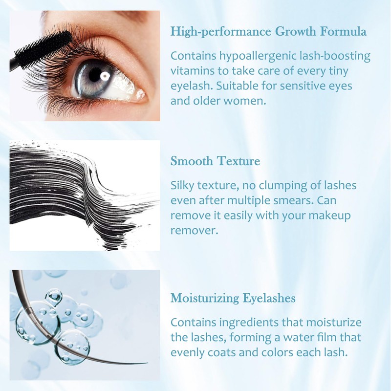 - Waterproof & Smudge-Proof & Long Lasting - With water-resistant, clump-free and long lasting formulas, our waterproof mascara withstands rain, tears, sweat or any moisture. It stays put all day without clumps, flakes or smears. The black lengthening mascara for mature women is light and smooth texture, and your will receive natural-looking, thick, curling and perfect eyelashes after use.