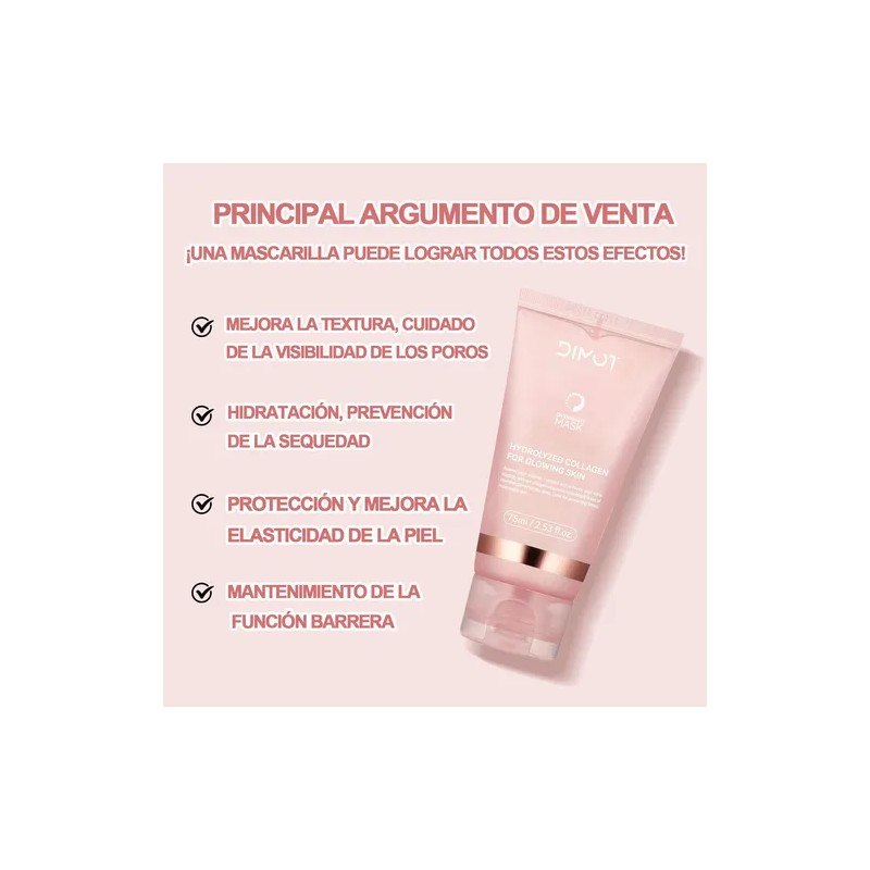 ¡Diga adiós a la flacidez y la opacidad!.Enriquecida con colágeno hidrolizado, esta máscara penetra profundamente para mejorar la elasticidad de la piel, lo que resulta en una apariencia más regordeta y juvenil.