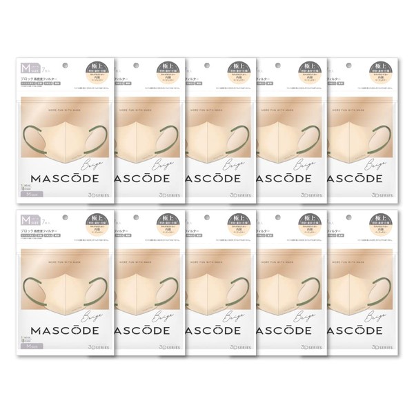 [MASCODE] お得な10袋(70枚入り) セット 【 マスコード 公式店】 SNS話題沸騰 累計3400万枚売上突破 不織布マスク バイカラーマスク 3Dマスク 小顔マスク 血色マスク ユニセックス 3Dマスク Mサイズ 10袋セット(1袋7枚入) (ベージュ×カーキ紐)