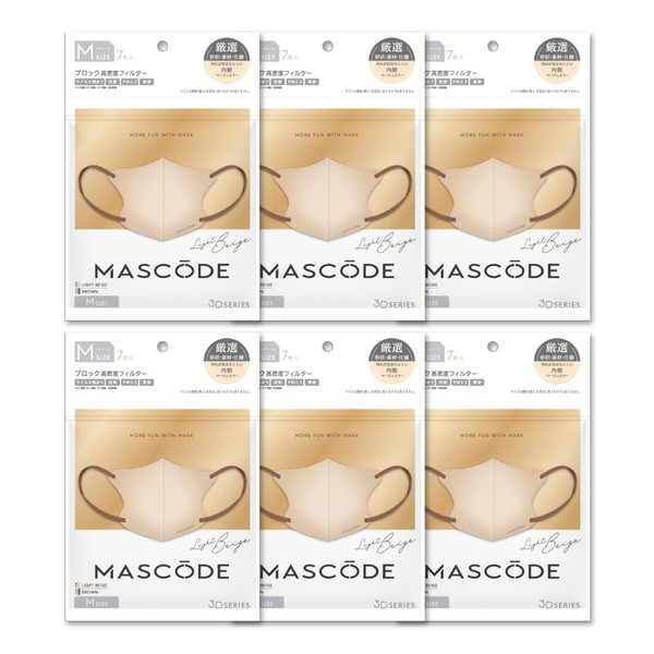 [MASCODE] 【 マスコード 公式店】 6袋セット 不織布 マスク 息がしやすい 蒸れにくい 耳が痛くならない バイカラーマスク 3Dマスク 小顔マスク 血色マスク ユニセックス メンズ ギフト 3Dマスク Mサイズ 6袋セット(1袋7枚入)(1袋7枚入) (ライトベージュ(ブラウン紐))
