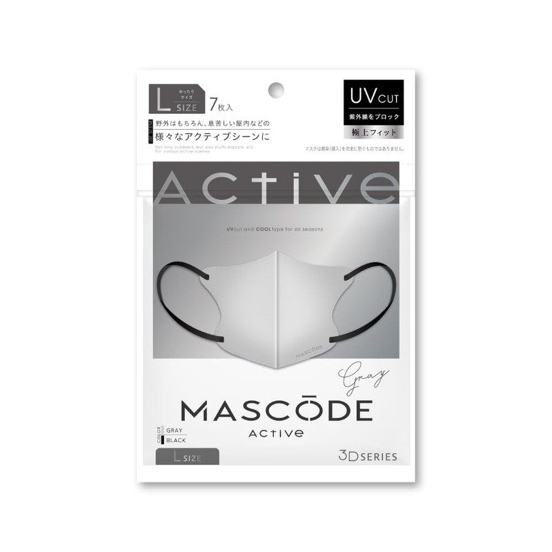 [MASCODE] 【 マスコード 公式店】[最短即日出荷]冷感マスク ひんやり マスク 涼しい uvカット 不織布 クールマスク 日焼け止め バイカラーマスク 小顔 フィット 小さめ 大きめ 運動 快適 アクティブシリーズ 1袋(7枚入) (L グレー(ブラック紐))