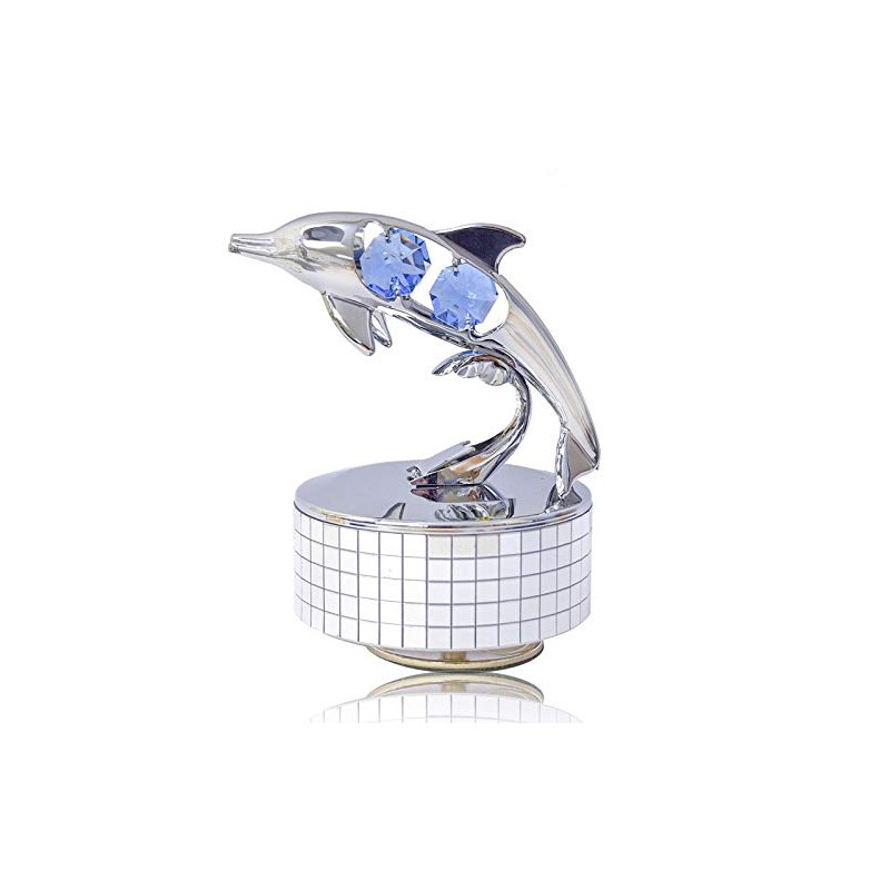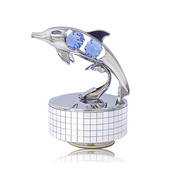 Mascot Chrome Plated Dolphin Music Box w/Blue Mascot Element Crystal