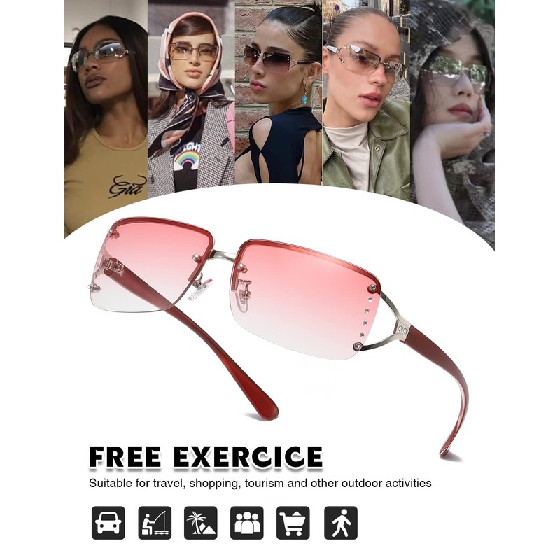 - --【TRENDY STYLE】:Rimless rectangle design,it's super stylish,and match for any look,makes you the most glamourous of the crowd.And it's suitable for both men and women in most occasions,a must have for your daily wardrobe y2k style