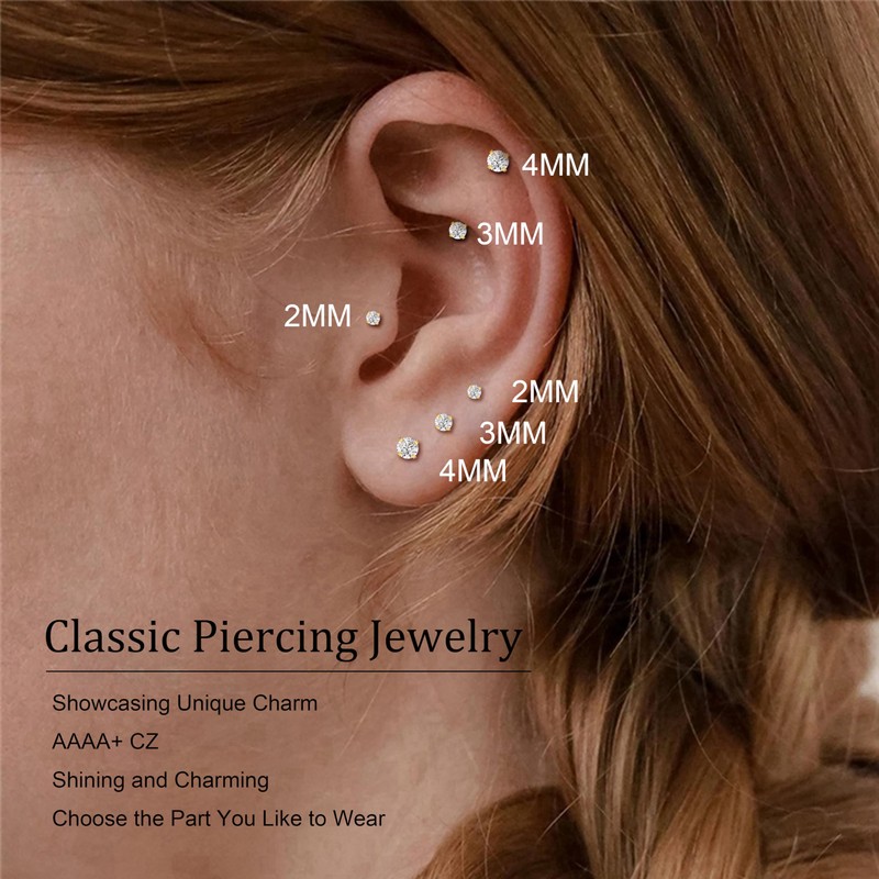 • Hpyoallergenic Cartilage Earrings Material:The Surgical Steel Threadless Cartilage Earrings Gauge Size:20G(0.8 mm);CZ Diameter:2/3/4mm;Bar Length:6/8 mm.The Popular Size Suitable for Most People.These Flat Back Stud Earrings are Made of Safety 316L Stainless Steel,Hypoallergenic,Lead Free and Nickle Free