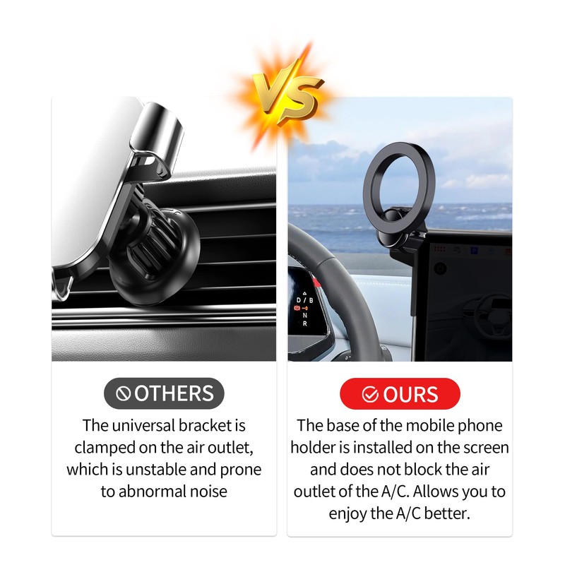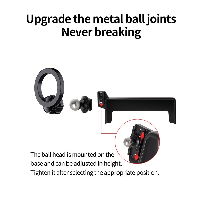 - Powerful Magnetic Car Mount Design for MagSafe:Car Mount for MagSafe are specially made of black aluminum alloy.Car Phone Holder comes with 20 wider N55 magnets that provide super-strong suction. The powerful magnetism keeps your phone stable,giving you a safe driving experience even on bumpy roads