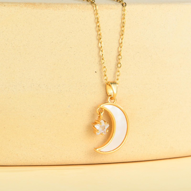 - Celestial Design: Featuring a crescent moon and star pendant crafted from abalone shell, this necklace captures the beauty of the night sky.