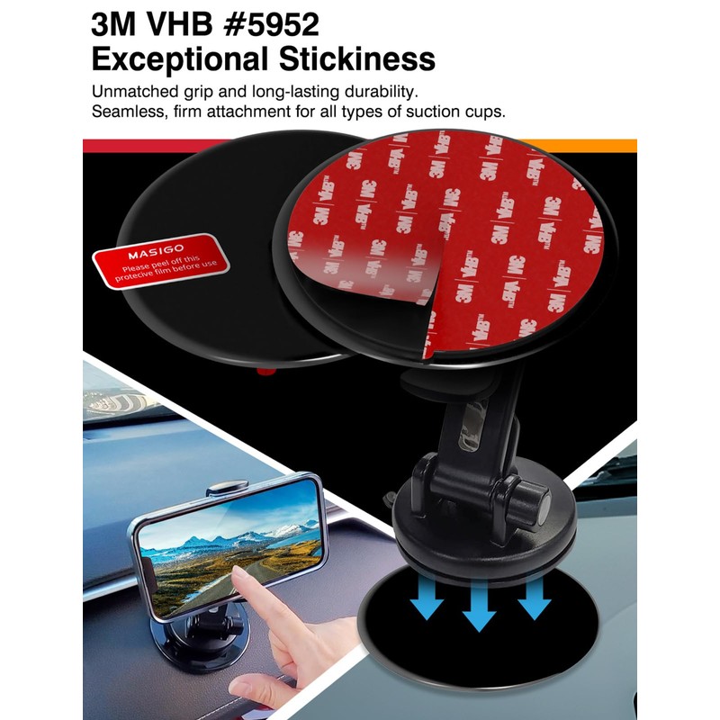 MASIGO 3M VHB Adhesive Dashboard Mounting Disk Set for Suction Cup Car Mounts - 3.74 inch (95mm) Wide, Ensures Secure Hold for Phone Holders, GPS, Dash Cams – Includes 2 Disks + 2 Replacement Sticky Pads