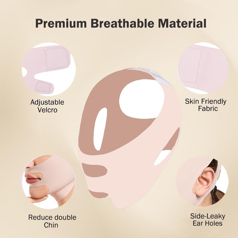 - 【 Facial Fit 】: MASIKA lifting bandage adopts 3D facial design, which can comfortably fit various facial structures. Specially designed with double-layer tension at the chin position, it provides better pressure and eliminates double chin. The side leakage design can free up the ears and improve comfort during wearing. Equipped with high viscosity, providing excellent grip and adjustable functions, creating a personalized fit!
