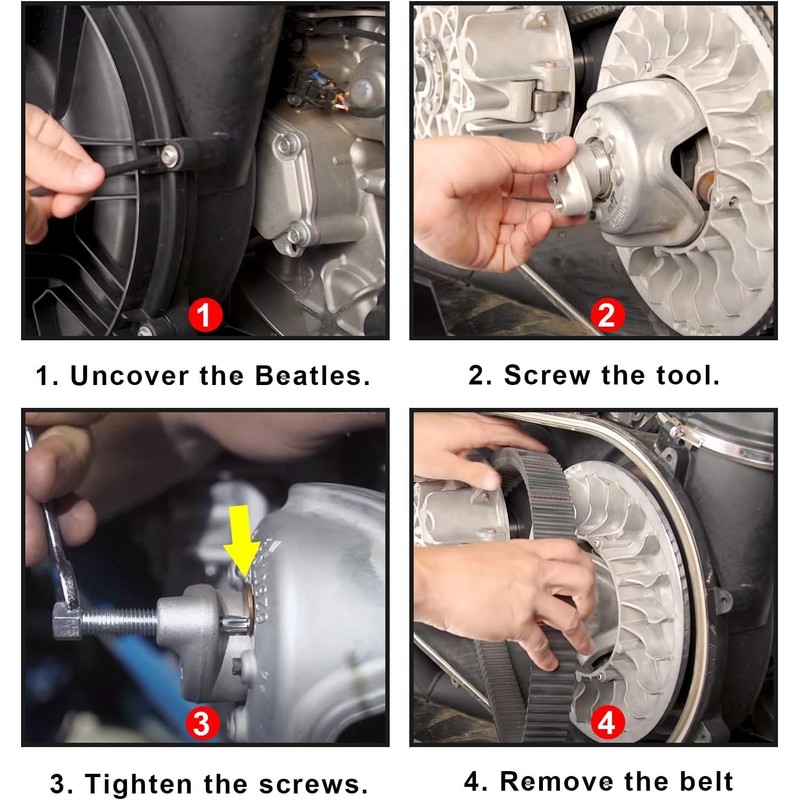 - Performance - Belt changing tool is to help you spread the clutch conveniently, so that you can change the cvt belt quickly and easily, which saves you a lot of time and energy