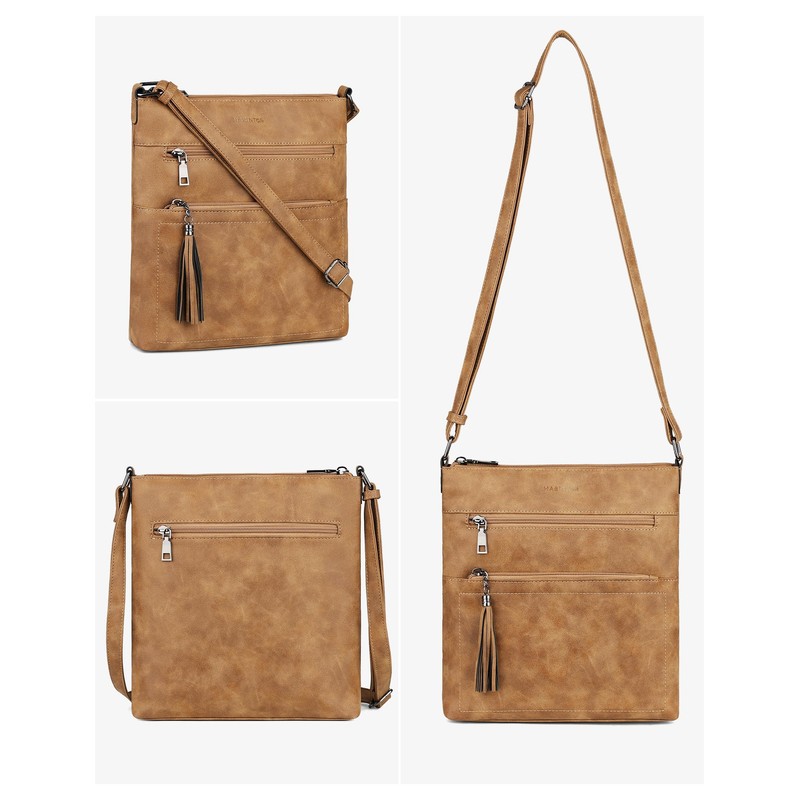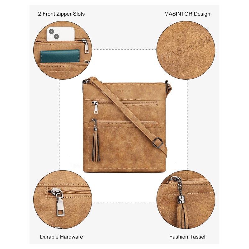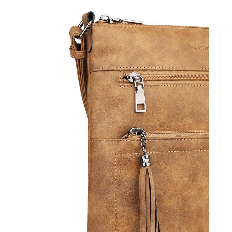 MASINTOR Crossbody Purses for Women, Multi Pocket Casual Crossbody Bag, Adjustable Strap Shoulder Bag with Tassel, Retro Millet Brown