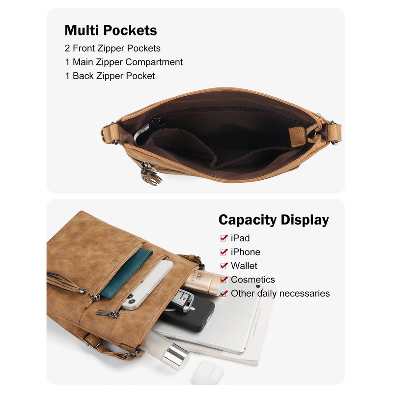 - 👍 Function &Fashion: This Purses For Women Crossbody Bag has spacious compartments with fashion tassl. exterior with 2 front zip compartments, can hold the items you need for daily travel, such as wallet, cell phone, keys, cosmetics etc; 1 back zip pocket. Interior with 1 zip compartment with 1 fully lined zipper bill compartment, suitable for credit cards, ID, Driver's License, easy to open and close.