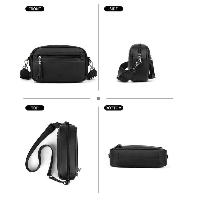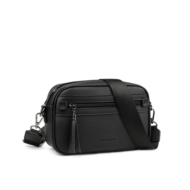 MASINTOR Crossbody Purses for Women Vegan Leather, Travel Purse Shoulder Handbag with Adjustable Strap, Fashionable Women’s Travel Bags with and Tassel Solid Black