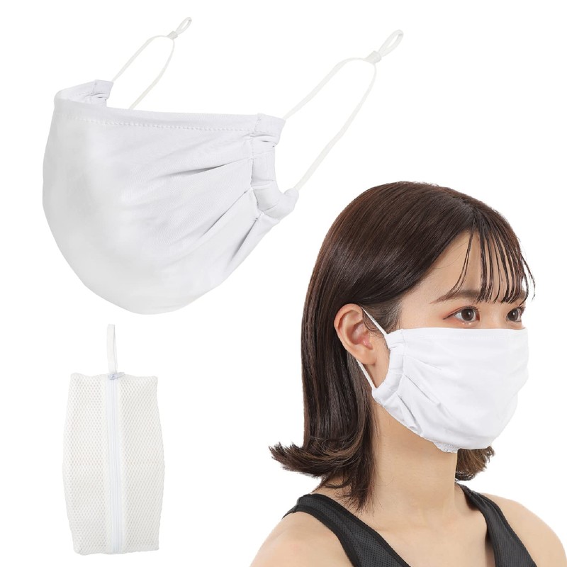 Mask, Cooling Sensation, Large, White, 1 Piece, Summer Cloth, Ice Silk, Antibacterial, Includes Washing Bag for Mask