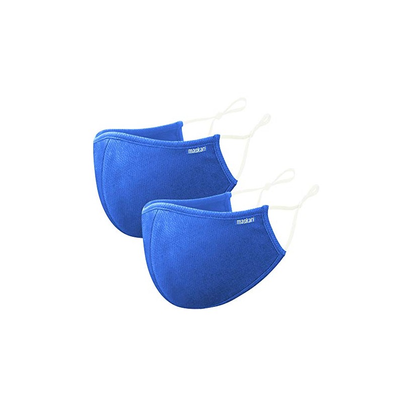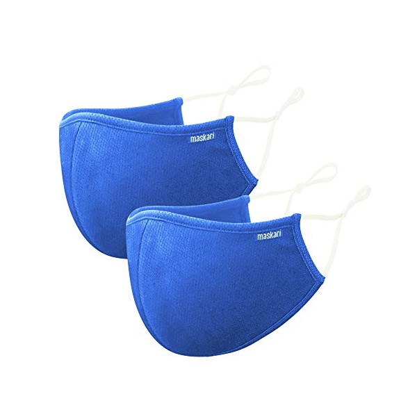 Maskari Maskari Royal Blue Reusable Face Mask | Washable | 3 Layer Face Masks | Adjustable Earloops | HeiQ Viroblock | Breathable | Ideal for women and teens | Pro 2 Pack, Medium