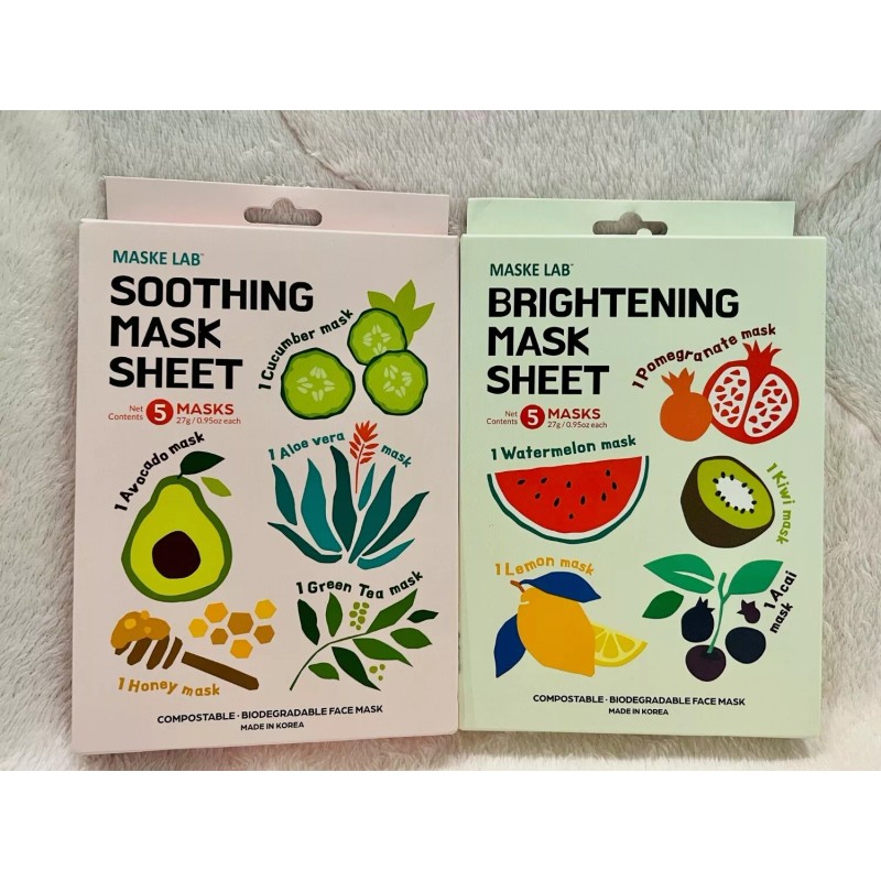 MASKE LAB - SOOTHING and BRIGHTENING MASK SHEETS (5 Masks per set) [US Seller]