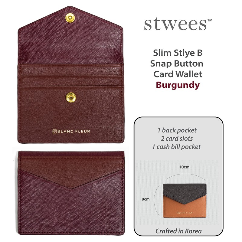 maskfactory Slim Leather Card Wallet, Folding, Snap Button, Lanyard set (style B - Folding, Burgundy), Burgundy, Belt Wallet