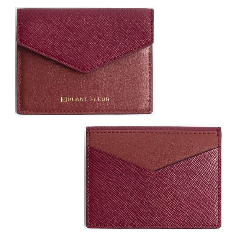 maskfactory Slim Leather Card Wallet, Folding, Snap Button, Lanyard set (style B - Folding, Burgundy), Burgundy, Belt Wallet