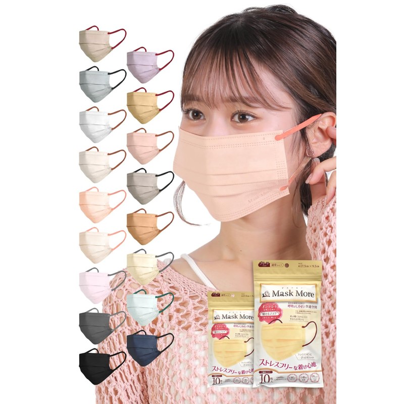 [MaskMore] マスクモア プリーツマスク 不織布 不織布マスク 立体マスク 小顔マスク バイカラー マスク おしゃれ 三層構造 小顔 カラーマスク 花粉症対策 20枚 サーモンピンク