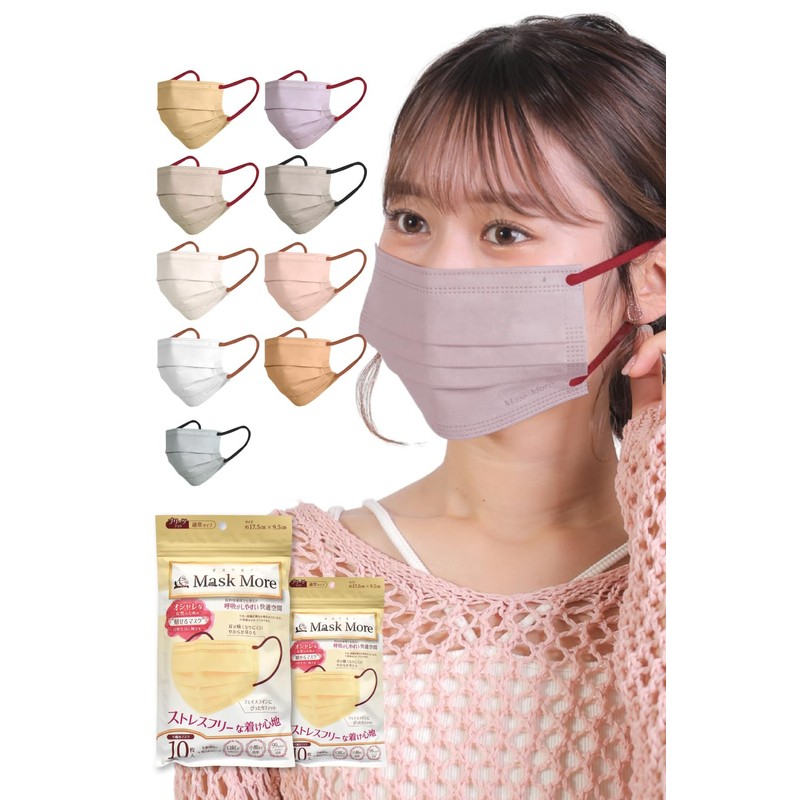 [MaskMore] マスクモア プリーツマスク 不織布 不織布マスク 立体マスク 小顔マスク バイカラー マスク おしゃれ 三層構造 小顔 カラーマスク 20枚 ローズ