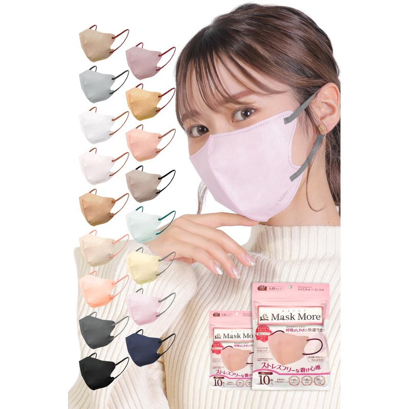 [MaskMore] マスクモア 3Dマスク 冷感マスク 不織布 立体 不織布マスク 立体マスク 小顔マスク 丸顔タイプ バイカラー おしゃれ カラーマスク マスク 花粉症対策 20枚入り ベビーピンク