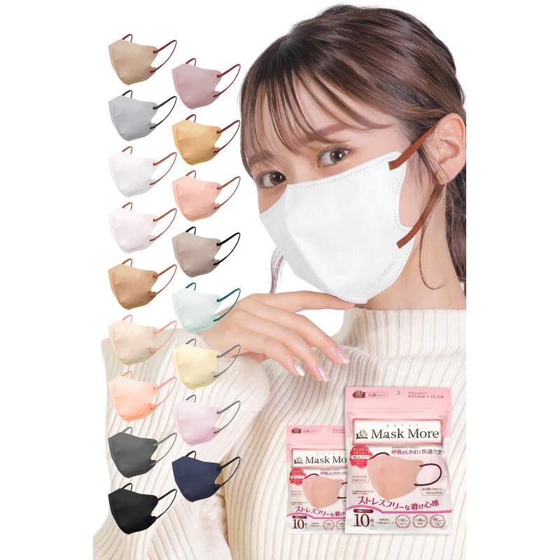 [MaskMore] マスクモア 3Dマスク 不織布 立体 不織布マスク 立体マスク 小顔マスク 丸顔タイプ バイカラー おしゃれ カラーマスク 20枚入...