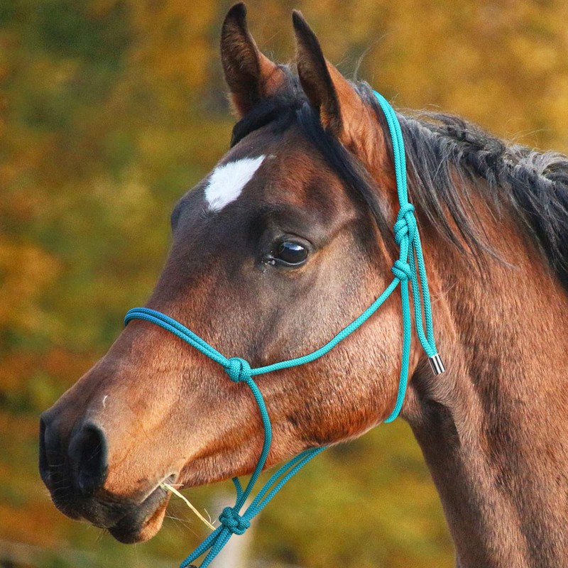 Maskology Rope Halter for Horses Super Sturdy Horse Rope Training Halter with 2 Knot 1/4" Stiff Halter Cord Weaning Turquoise