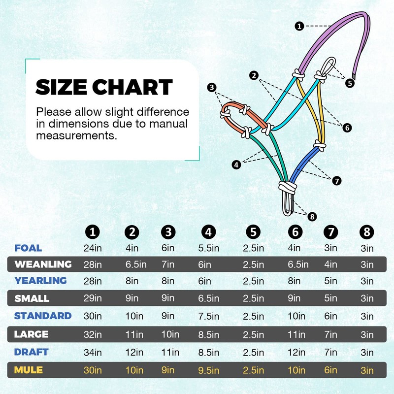 • STRONG ROPE HORSE ROPE HALTER: Made with 1/4” rope, the halter exerts enough force and yet won’t bite into your horse when under pressure. Strong and with little stretch.