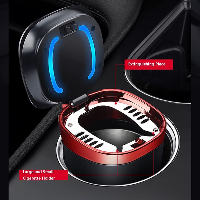 MASO Car Ashtray with Lid and LED (Induction Hole Design) Car Ashtray ABS+Metal, Silver/Red/Black