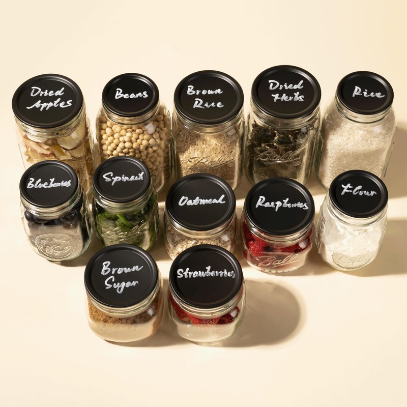 Transform your mason jars into versatile storage solutions with these innovative chalkboard top lids. Perfect for organizing your pantry, these lids let you easily label and relabel your contents with regular chalk. The durable construction ensures a secure fit on standard mason jar openings, while the writable surface makes identifying stored items a breeze. Whether you're storing dry goods, spices, or crafting supplies, these lids help keep your items fresh and well-organized. The black chalkboard surface provides excellent contrast for clear visibility of your handwritten labels. Simply wipe clean with a damp cloth when you want to change the label. These practical lids are ideal for home organization, party preparation, or creative gift packaging. Compatible with regular mouth mason jars, these lids bring both functionality and style to your storage needs.