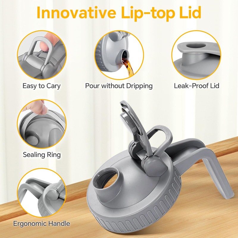 Mason Jar Pitcher, 32 OZ Glass Pitcher with Lid Double Leak-proof with Handle Water Jug Wide Mouth Breast Milk Pitcher Fridge Container for Water, Juice, Iced Coffee, Tea, Juice - Grey