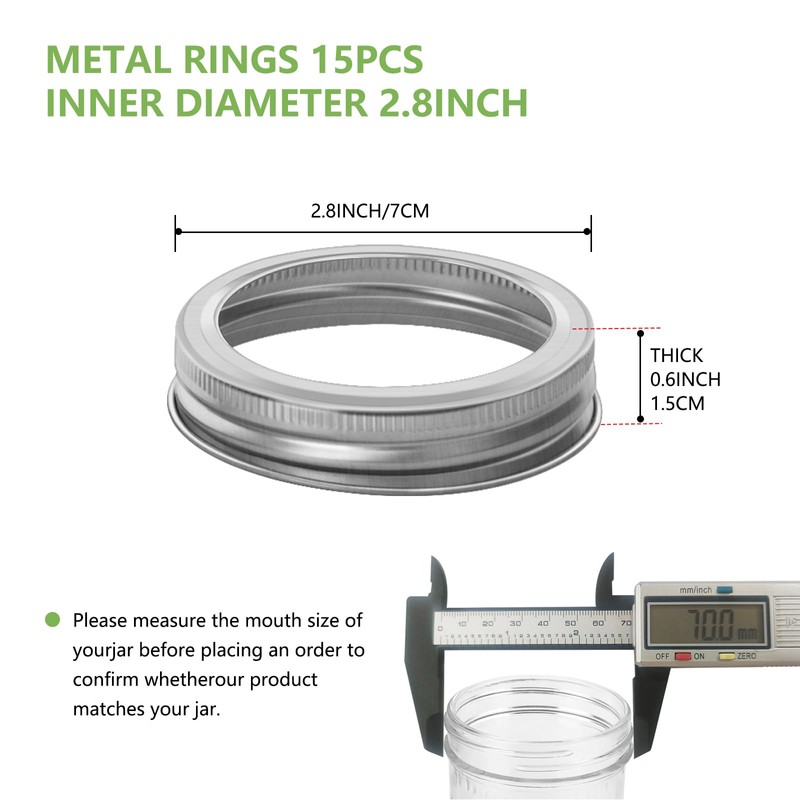- 【70MM REGULAR MOUTH】You will receive 15 pieces of mason canning jar replacement metal rings (without lids),size:2.7inch / 70mm in diameter, suitable for regular cans and bottles.
