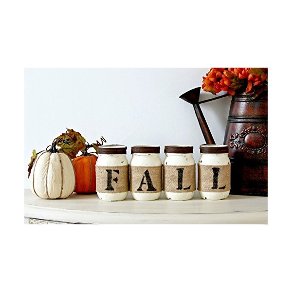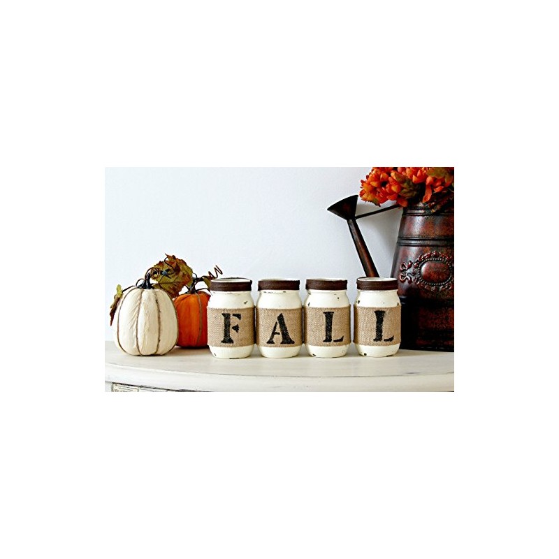 Mason Jars Set Fall Decor Centerpiece | Brown Burlap Tabletop Thanksgiving De...