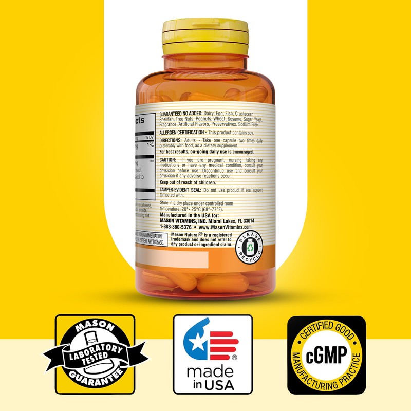 - THE BEST VITAMINS FOR OVER 50 YEARS: For more than five decades, Mason Natural has produced quality vitamin supplements under cGMPs (current Good Manufacturing Practices) and adhering to US guidelines. All ingredients and finished goods are subjected to rigorous analytical testing, inspections and quality auditing.