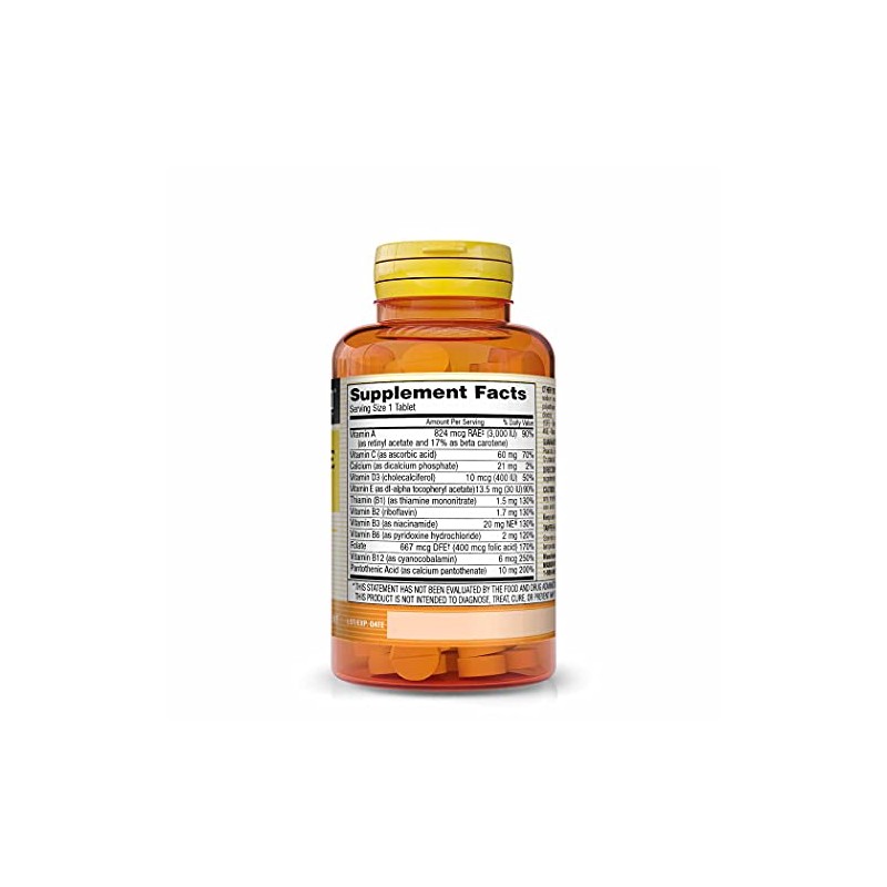 MASON NATURAL Daily Multiple Vitamins - Vitamins A, C, D3, E, B1, B2, B3, B6, B12, Folate and Calcium for Overall Health, 100 Tablets