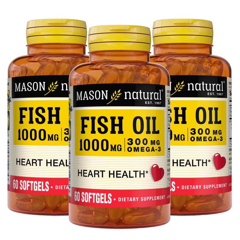 MASON NATURAL Omega,3 Fish Oil, 180,Day Supply, 1000mg with EPA and DHA for Joint Support, 60 Softgel Pills (3 Pack)
