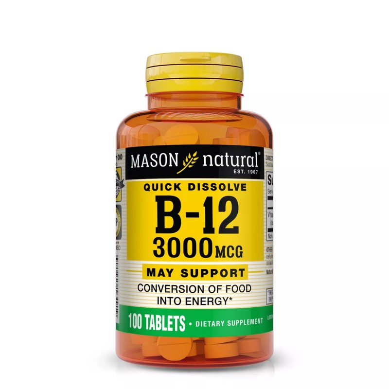 Mason Natural Vitamin B12 3000 mcg Quick Dissolve, Raspberry Flavor, 100 Tablets