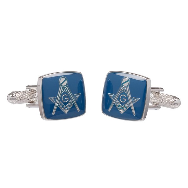 Masonic Cufflinks for Men - Freemason Blue Square & Compass Cufflinks Presented In GS Cufflink Box (Blue/Silver with G)