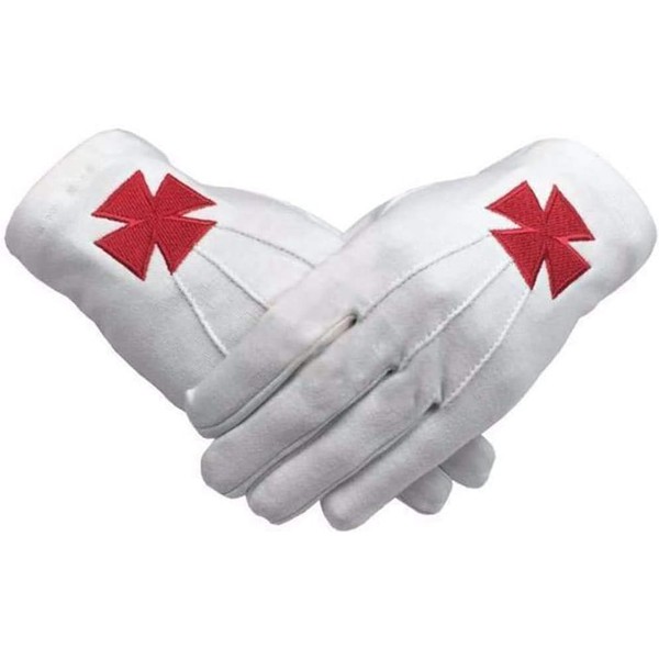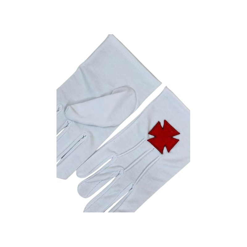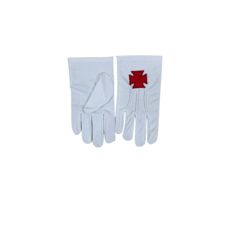 - Intricate Design: Masonic Knight Templar Red Nordic Cross embroidery on a white 100% cotton glove.