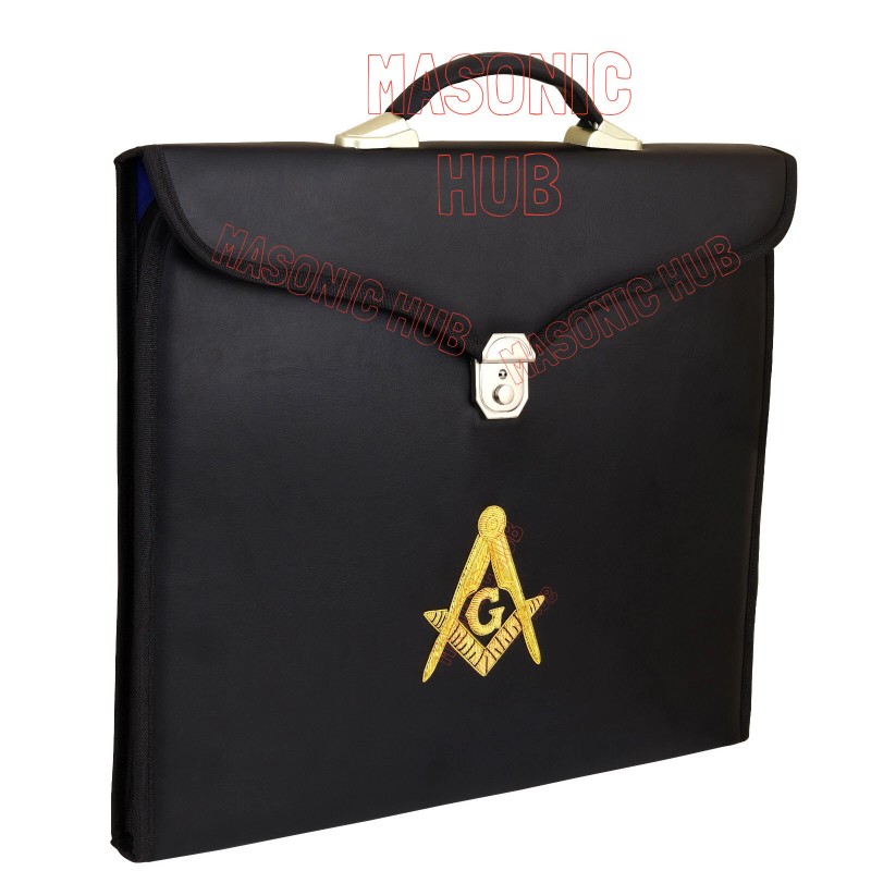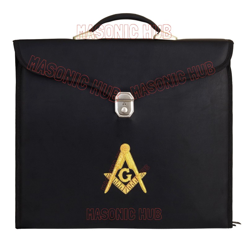 Masonic Regalia Black File Case For WM/MM Apron with Hard Handle & G Logo-BLACK