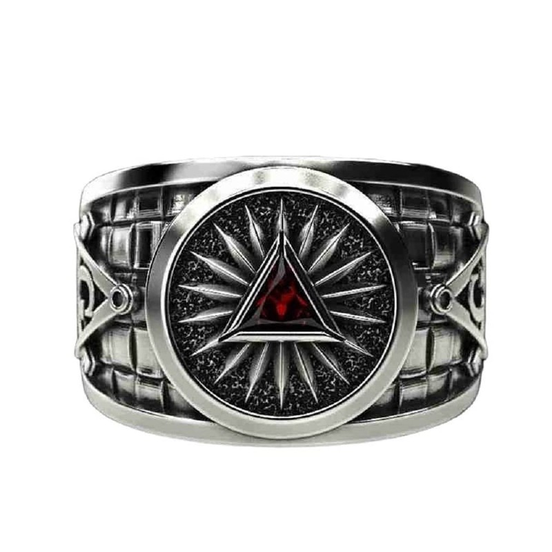 Masonic Ring for Men, Crystal Triangle Masonic Freemason Ring, Freemason Symbol Masonic Rings, Hip Hop Biker Ring, Religious Amulet Ring, Punk Masonic Jewelry (Silver, V1/2)