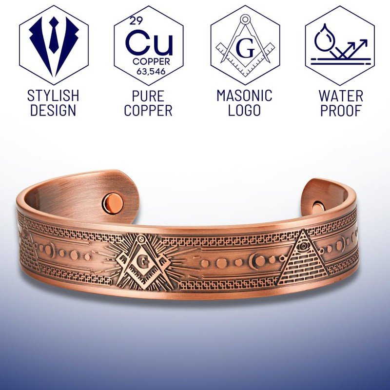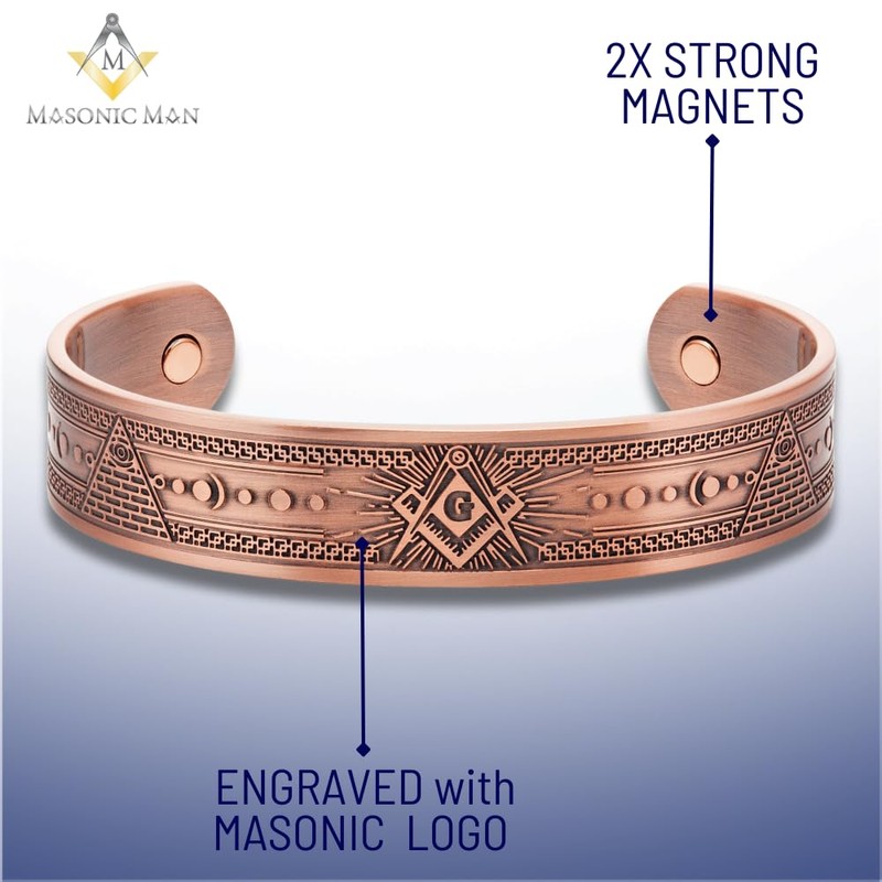 MasonicMan Masonic Men's Pure Copper Magnetic Adjustable Bracelet Bangle