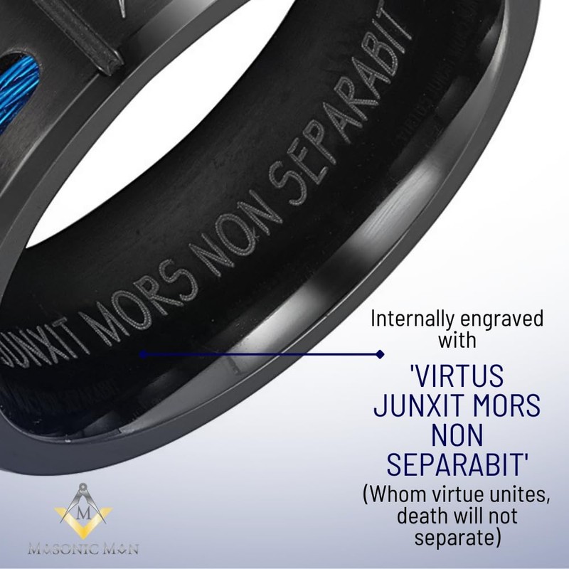 MasonicMan Mens Titanium Freemason Masonic Ring Latin Engraving Inside Style 5, Non-Precious Metal, No Gemstone