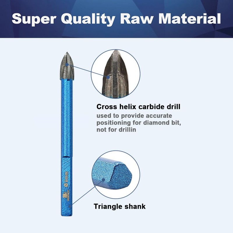 - Size --10pcs/pack 6mm*10Carbide drill bits, diamond height 10mm, total length 65mm,Triangle shank diamond core drill bit