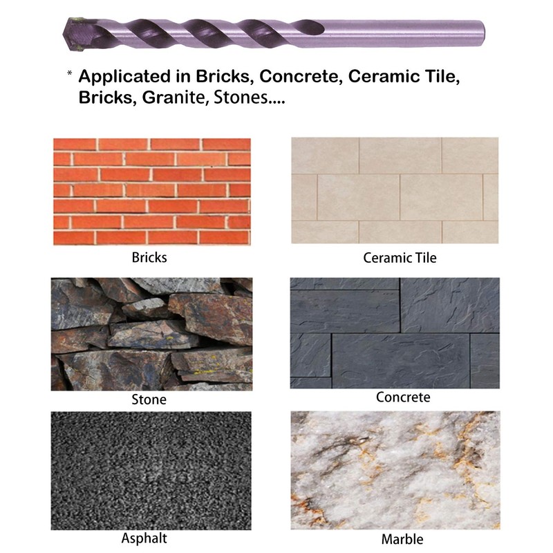 • Carbide Tip Point: The 130 deg. cutting point to enable easy cutting and best self-centering without Walking off When Drill Through Bricks, Stones, Concrete