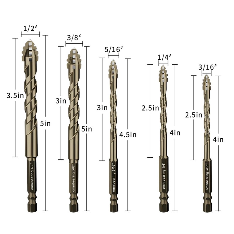 - Multifunctional Package:5 pcs drill bit set with 5 different sizes: that is 2*5/32"(4mm), 1*3/16” (5mm),2*1/4” (6mm), 5/16” (8mm) fit your different needs.