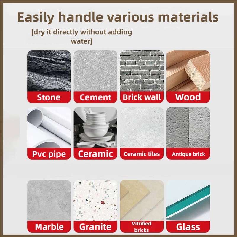 - Frequent water is added for drilling. The drill bit is more suitable for waterless drilling. It should be noted that the speed of the electric drill should be adjusted according to different substances.