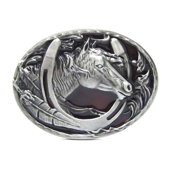 MASOP Equestrian Horseshoe Horse Head Embossed Mens Belt Buckle Oval