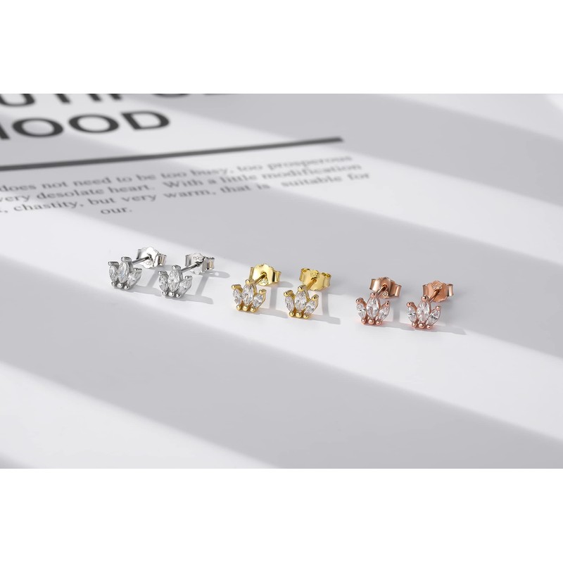 - Rose gold stud earrings: leaf branch stud earrings silver 925 and rose gold-plated, 3 high-quality AAA zirconia, sterling silver 925 studs, hypoallergenic, suitable for most people.