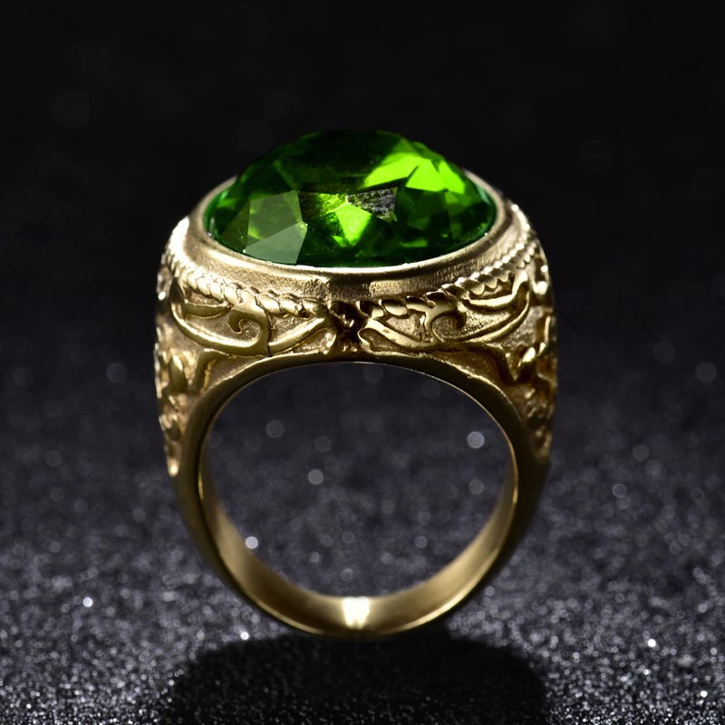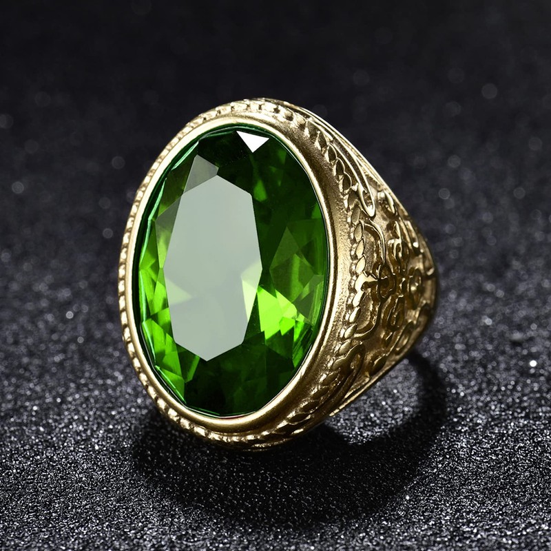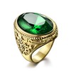 MASOP VOGU Vintage Stainless Steel Mens Rings Luxury Jewelry Oval Green Cubic Zirconia Stone Simulated Emerald Size 10